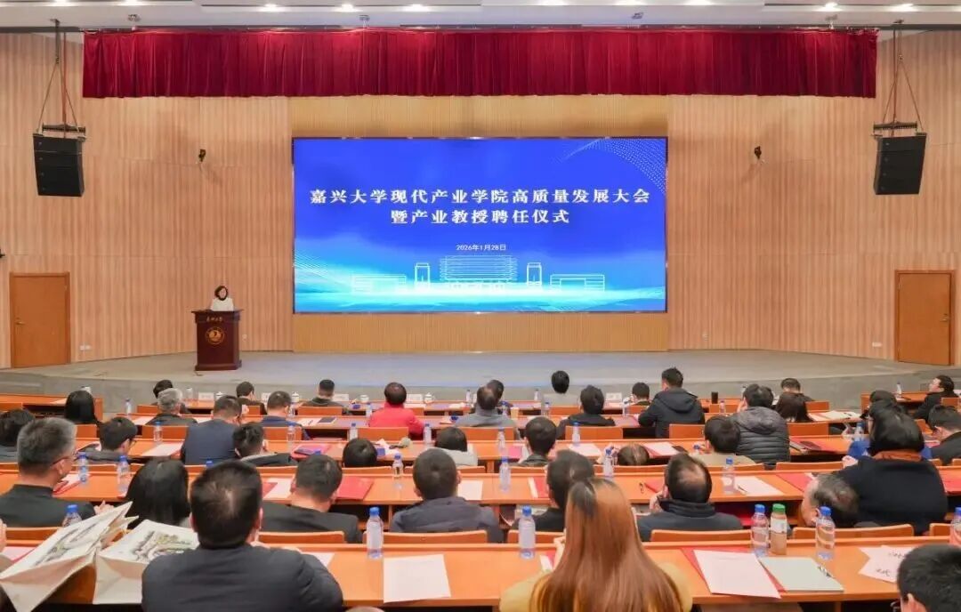 1月28日下午,嘉兴大学现代产业学院高质量发展大会暨产业教授聘任仪式在行政楼报告厅举行。嘉兴大学校长梅德庆,嘉兴市教育局党组书记、局长周静,嘉兴市经济和信息化局副局长叶海江等出席会议。嘉兴大学副校长张琦主持会议。